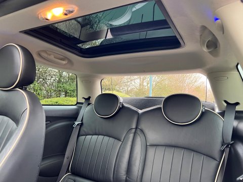 - CHILI PackPanoramic Electric Glass Sunroof17in Alloy Wheels - Light Conical SpokeHeadlights - Bi-XenonBasic Bluetooth Function with USB AudioPDC - Park Distance Control - RearAir Conditioning - AutomaticSeat Heating for Driver and Front PassengerMultifunction Controls for Steering WheelDarkened Rear GlassElectrically Folding Exterior MirrorsInterior Light PackFront Centre ArmrestFront Fog LightsChrome Line InteriorColour Line - Carbon BlackRain Sensor and Automatic Headlight ActivationInterior Surfaces - Piano Black3-Spoke Sport Leather Steering Wheel with Gearshift PaddlesRoof and Mirror Caps - BlackLeather Lounge - Carbon BlackFull Bluetooth Telephone Preparation with USB AudioOn-Board Computer17in Infinite Stream Spoke Light Alloy Wheels17in Alloy Wheels - Light Star Bullet - BlackMINI Sport CHILI Pack
